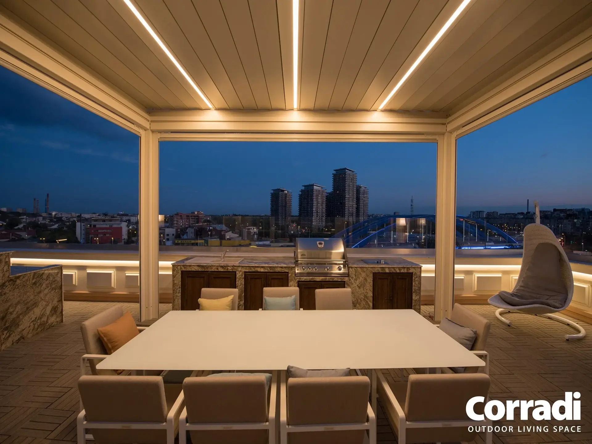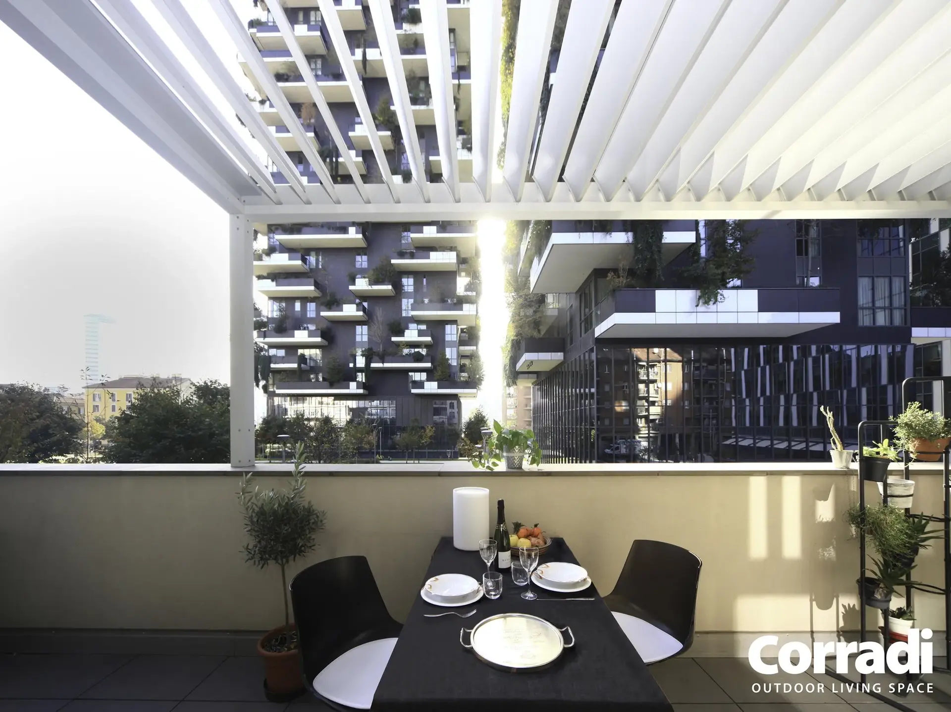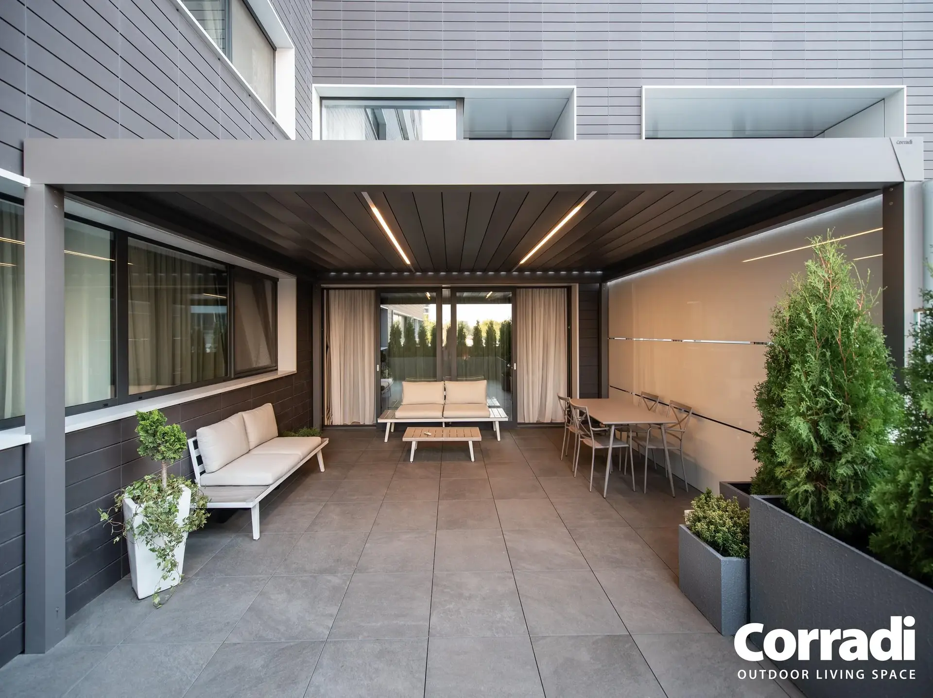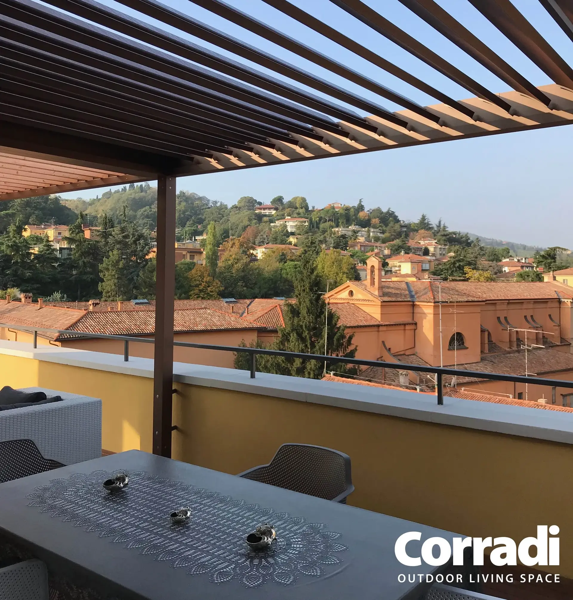 Le na ta način lahko zunanji prostor postane prava izraznost vsake ustvarjalne ideje, prilagodljiv v pohištvu, uporabi in celo v barvah. Tako kot druge bioklimatske pergole Corradi, je tudi Alba na voljo v različnih odtenkih – od najbolj klasičnih do najbolj ekstravagantnih. Z unikatnim, po meri prilagojenim slogom Alba vedno postane osrednja točka okolja, tudi v izvirni dvobarvni različici.