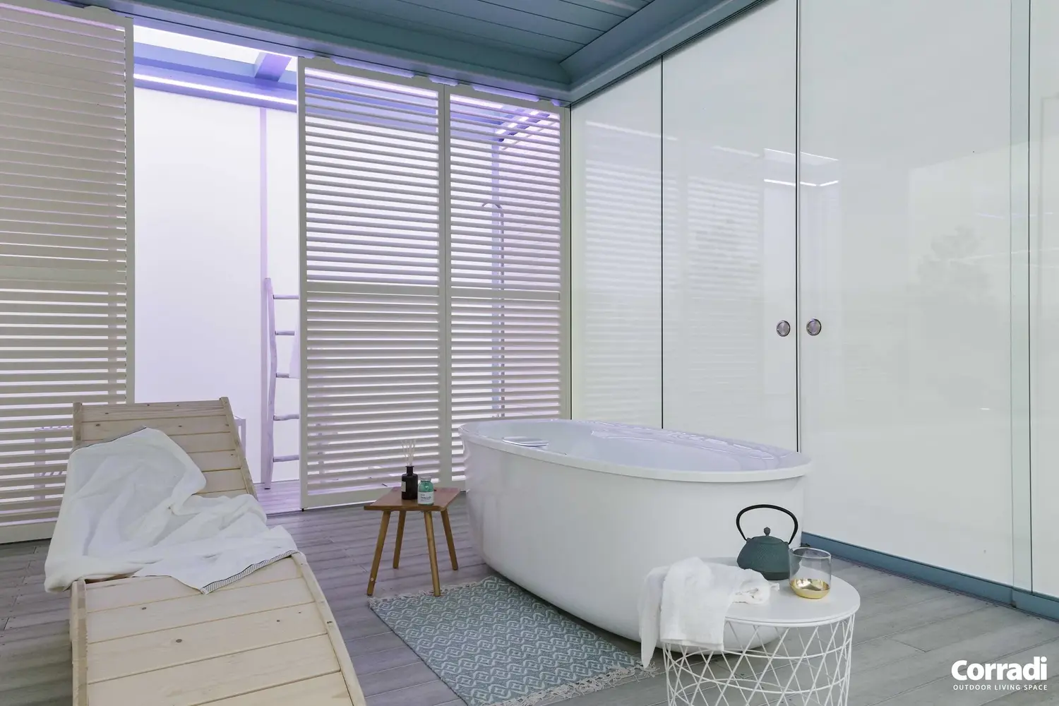 Grede velikosti 15 x 25 cm so prav tako zasnovane za vključitev tirnic za drsna steklena vrata in zložljive platnene vertikalne zaščite, kar skriva morebitne prekinitev iz pogleda.