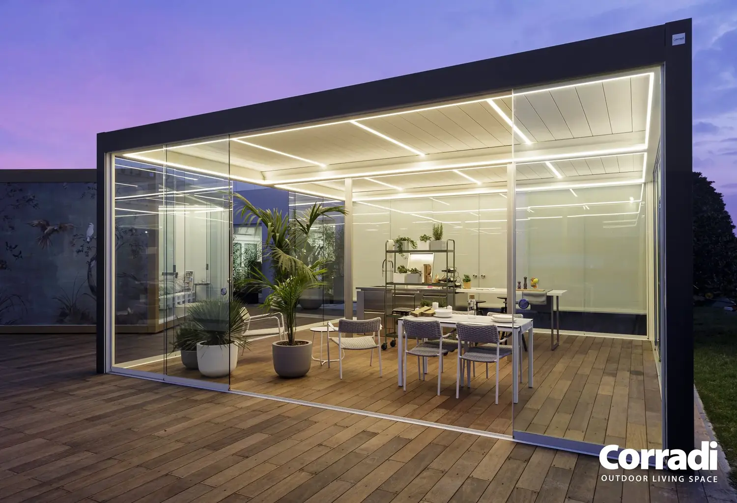 To je interpretacija zunanjosti kot prostora za življenje izven doma, zasnovanega kot avtonomna, prilagodljiva entiteta, ki v sebi nosi Corradi DNK, narejeno iz izkušenj, inovacij, čustev in italijanskega oblikovanja.