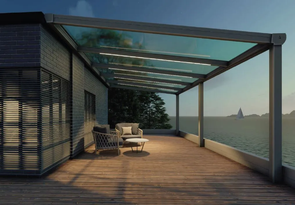 Profili za pritrditev na steno in njihovi notranji elementi omogočajo različne naklone glede na želje uporabnikov.. Streho z naklonom (od 7 do 18 stopinj) je mogoče zastekliti s steklenimi ali polikarbonatnimi ploščami.